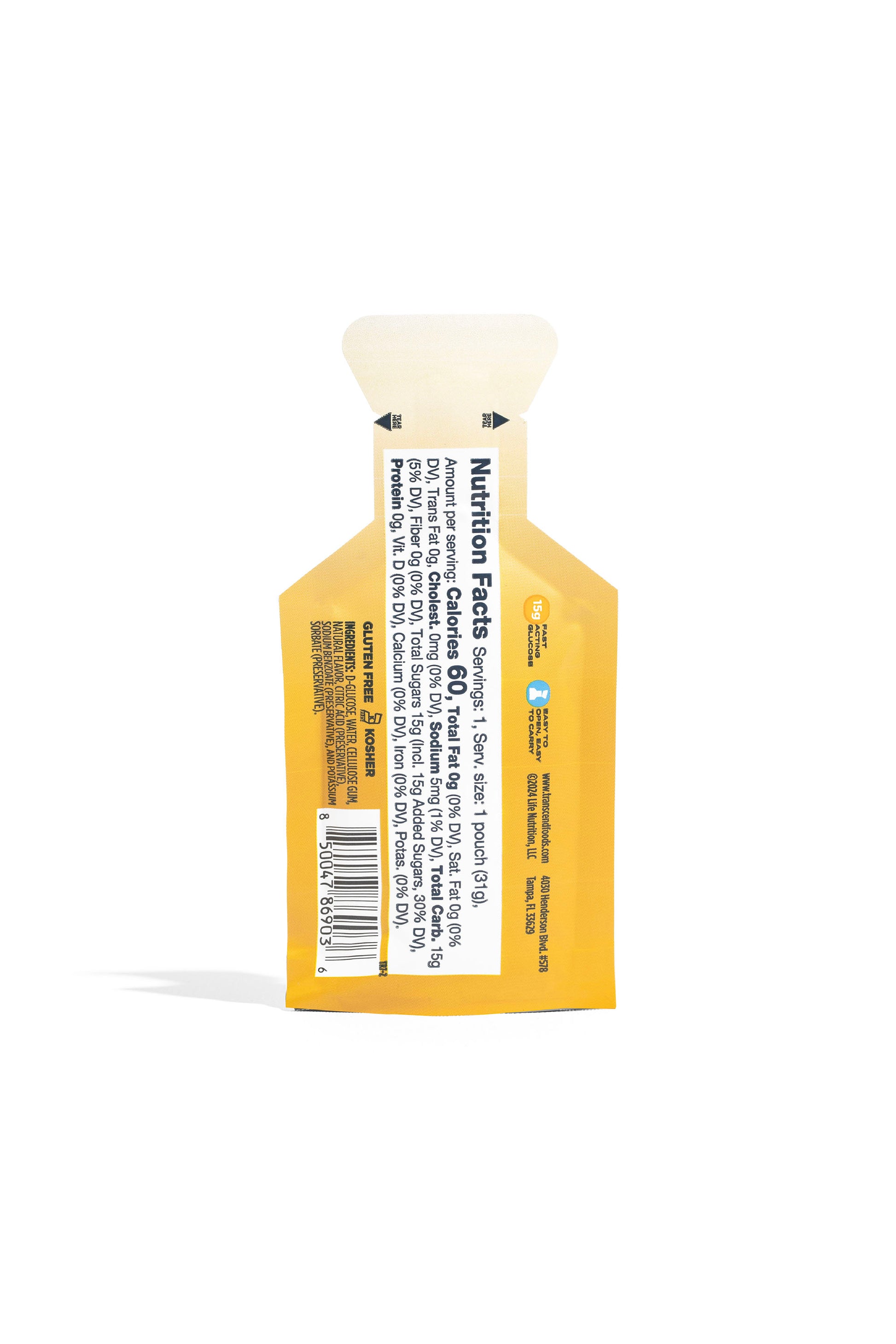 D-glucose, water, cellulose gum, citric acid (preservative), natural flavor, sodium benzoate (preservative), potassium sorbate (preservative)